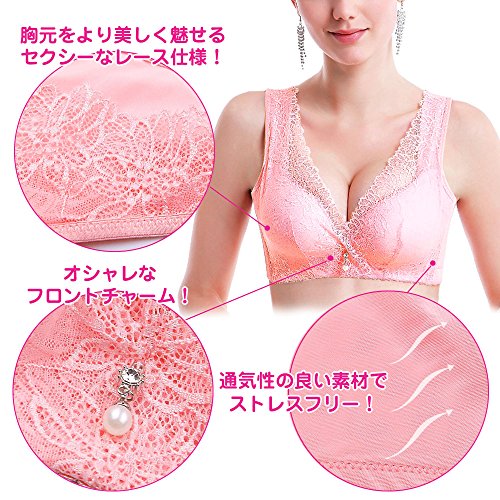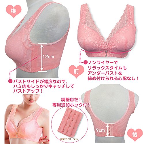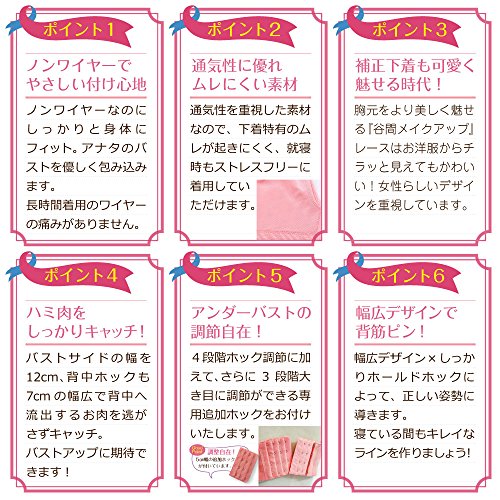 【瞬コル】育乳ナイトブラ 猫背矯正タイプ 可愛いフロントチャーム 拡張ホック付 (75C_ピンク)