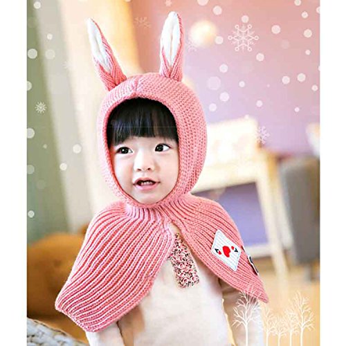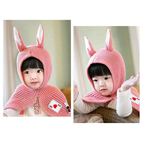 jpamzceo キッズ 帽子+ショール うさぎ耳 萌え 可愛い リップ編み 暖かい ピンク