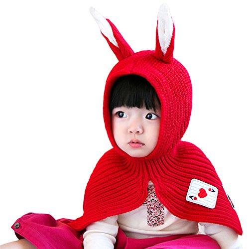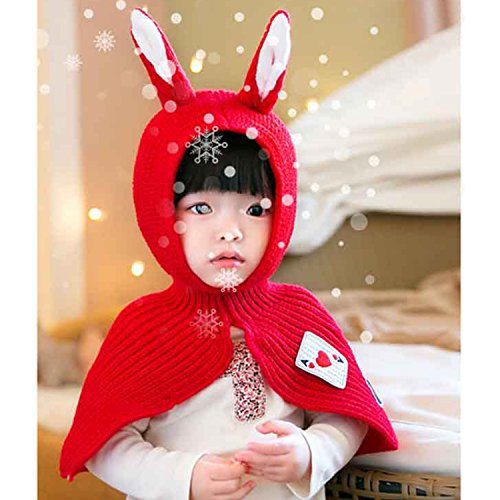jpamzceo キッズ 帽子+ショール うさぎ耳 萌え 可愛い リップ編み 暖かい レッド