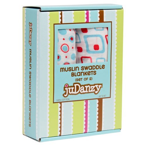 juDanzy Geometric Turquoise & Red 100% Cotton Swaddle Set of 2 Large 45X45 Muslin Baby Girl or Boy Blankets by juDanzy