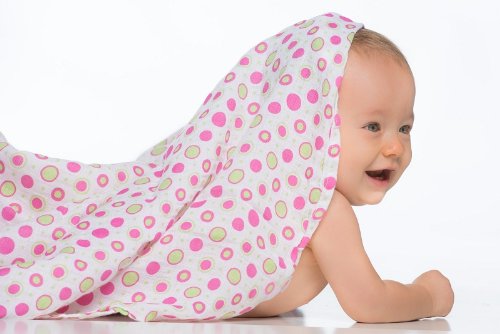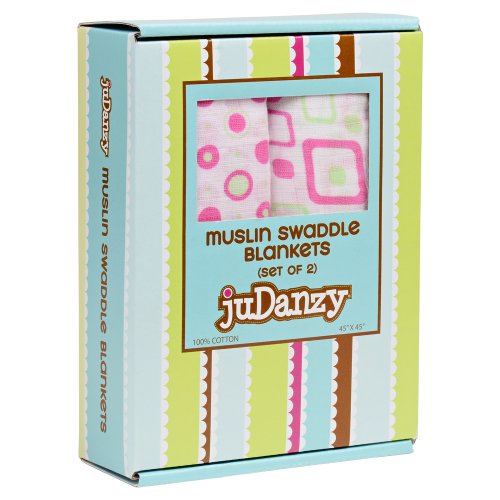 2 pack of 100% cotton muslin swaddle blankets;Each blanket is 45 x 45 (115 cm x 115 cm);Lightweight and breathable; reduces the risk of overheating.;Hot Pink, White and Lime Circles and Squares Sets;Perfect for swaddling, nursing discreetly, traveling, shading the sun, and cuddling.