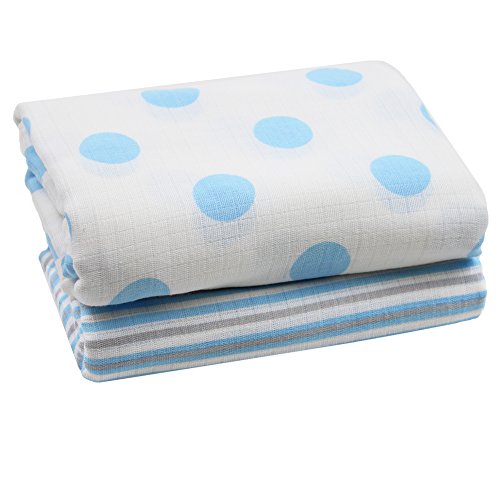 2 pack of 100% cotton muslin swaddle blankets;Each blanket is 45 x 45 (115 cm x 115 cm);Lightweight and breathable; reduces the risk of overheating.;The more they are washed, the softer they get!;Perfect for swaddling, nursing discreetly, traveling, shading the sun, and cuddling.