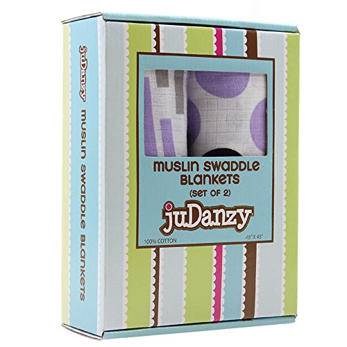 juDanzy 100% Cotton Swaddle Set of 2 Large 45X45 Muslin Baby Girl or Boy Blankets (Midnight Lilac) by juDanzy