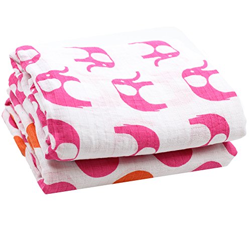 2 pack of 100% cotton muslin swaddle blankets;Each blanket is 45;Lightweight and breathable; reduces the risk of overheating.;The more they are washed, the softer they get!;Perfect for swaddling, nursing discreetly, traveling, shading the sun, and cuddling.