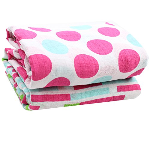 2 pack of 100% cotton muslin swaddle blankets;Each blanket is 45 x 45 (115 cm x 115 cm);Lightweight and breathable; reduces the risk of overheating.;The more they are washed, the softer they get!;Perfect for swaddling, nursing discreetly, traveling, shading the sun, and cuddling.