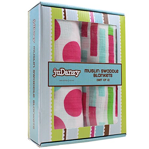 juDanzy 100% Cotton Swaddle Set of 2 Large 45X45 Muslin Baby Girl or Boy Blankets (Garden Delight) by juDanzy