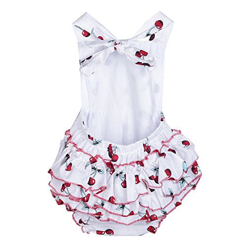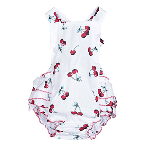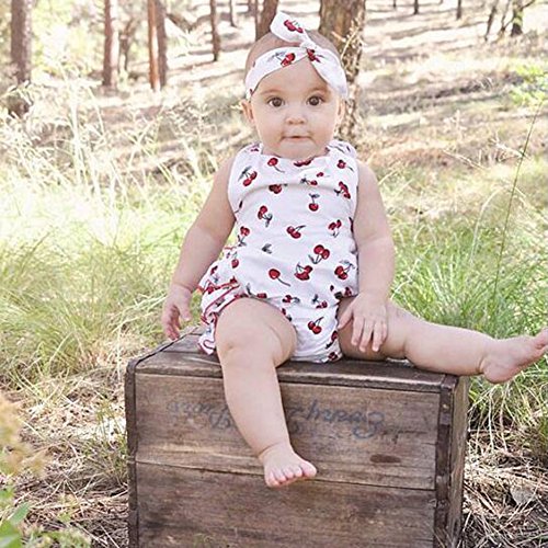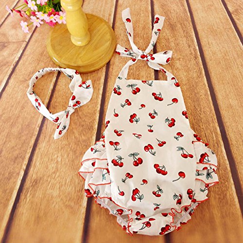 Junda ベビー服 春夏 はいはいロンパース+ヘッドバンド 出産祝い 女の子 吸汗 綿 チェリー柄