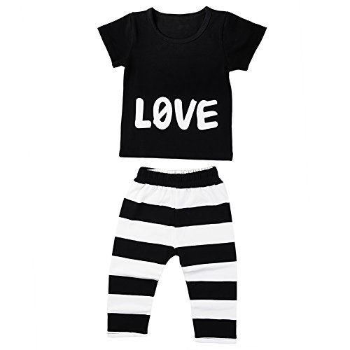 Junda 赤ちゃん 服 半袖 Tシャツ & パンツ セット 英字 ベビー 服 プレゼント