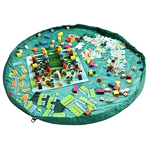 kangaroobaby 2in1 ストレージバッグ&プレイマット片付けらくらく ブロックポーチ 子供 おもちゃ 収納 おかたづけマット (150CM, Green)