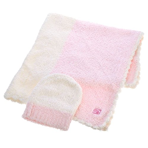 KASHWERE/カシウェア BABY BLANKET ブランケット&キャップ(パステルピンク×ホワイト)。カシミアのような肌触りでベビーやキッズにも安心してお使い頂けるブランケットと同素材のキャップのセットです。