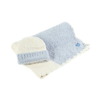 カシウエア / kashwere Center Stripe Cap and Blanket Set センターストライプ ベビーブランケット&キャップセット (Baby blue Cream) [並行輸入品]