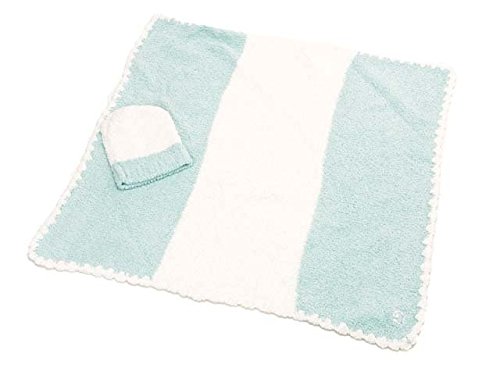 (カシウエア)kashwere ベビーブランケット センターストライプ&キャップ BABY BLANKET & CAP bb-69c-05-30 AQUA w/centered creme rugby stripe(キャップロゴなし) 78cm×78cm [並行輸入品]