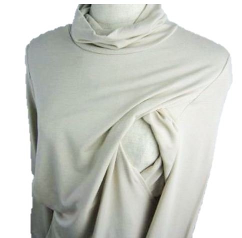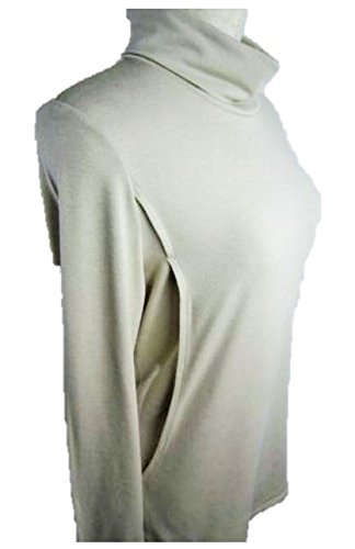 《ママ&赤ちゃんにも安心安全 MADE IN JAPAN 》 出産後用授乳服タートルネックトップス 【日本製】 (M, ベージュ)