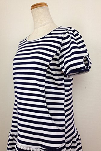 授乳機能付きワンピース 【ボーダーオフ白×ネイビー Mサイズ】 安心・安全の日本製です!!【出産後用授乳服】