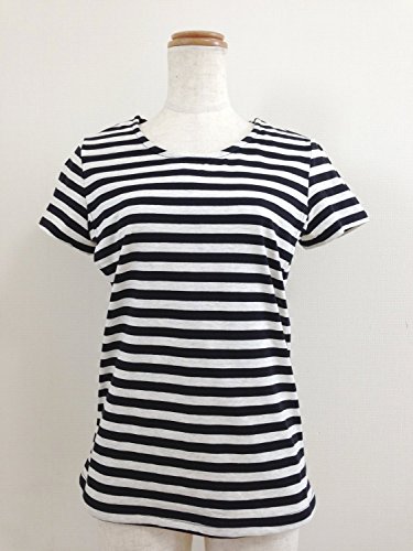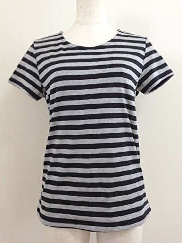 kazustyle 授乳機能付きボーダーTシャツ Lサイズ オートミルx黒