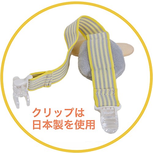 両端についているクリップで、タオルをとめて赤ちゃんのスタイ代わりに使ったり、帽子をとめて帽子落下防止をしたり・・・・