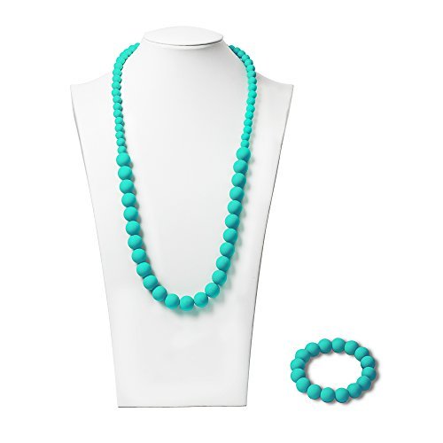 SAFE FOR BABY: The teething necklace and bracelet beads are made of 100% food grade silicone and is BPA-Free, FDA approved, PVC-Free, Latex-Free, Rubber-Free, Lead-Free silicone. It contains no vinyl, phthalates, plastic, nitrosamines, cadmium, or heavy metals. They are taste and smell-free. 100% safe for your infant.;SOOTHES TEETHING PAIN: Forget about toxic remedies like teething gel and tablets. Soft, chewy beads provide natural pain relief for your baby's teeth. It can also be frozen or placed in the freezer so your little one can chew on cold beads.;LOOKS GREAT ON MOMMY: Moms can wear this set like bling or jewelry. Available in different colors, they can be matched to your outfit. Better than baltic amber and great alternative to teether toys and animals like Sophie the giraffe, teething bibs, pacifier, blanket, towel, books, ring, keys or toothbrush. This set is a smart addition to your registry or great baby shower gifts.;KEEPS BABY OCCUPIED: Like a toy, it can keep your baby entertained while being held or carried. It can keep your baby from pulling your hair or face while nursing or breastfeeding.;EASY TO CLEAN: Dishwasher safe for easy cleaning and care. It can also be boiled for sterilization.