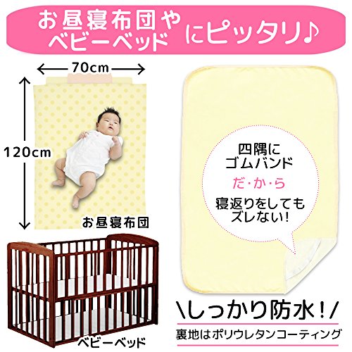 - 70cmx120cmのベビー用防水おねしょシーツです。標準サイズのベビーベッドやお昼寝布団にピッタリのサイズです。赤ちゃんのオムツ漏れや吐き戻しなどの汚れ防止に!