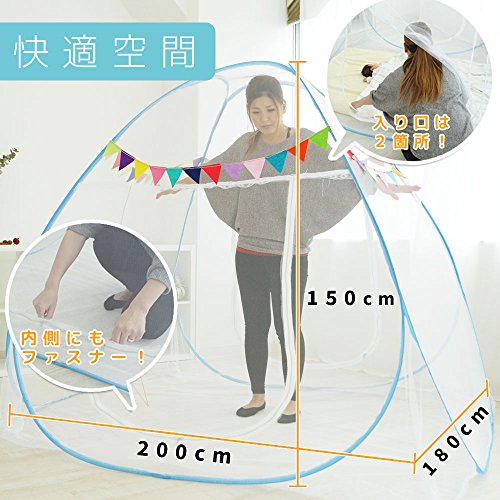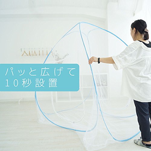 - 忙しいママに嬉しい簡単ラクラク設置! 蚊帳って設置するのが大変そう・・・・ といったイメージをお持ちの方も多いはず。 本製品は収納袋から出した瞬間 パッと広げられるワンタッチタイプなので、 女性でもすぐに設置が可能です。