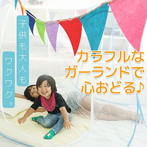 - 【従来のシンプルな蚊帳じゃつまらない!】 機能だけじゃなく見た目だってカワイイほうがいいですよね。 まるで家の中でキャンプをしているような 子供も大人も心躍るカラフルなガーランド付きのテント型蚊帳です♪ 蚊帳を広げたら、上からパッとかけるだけだから取り付けも簡単♪