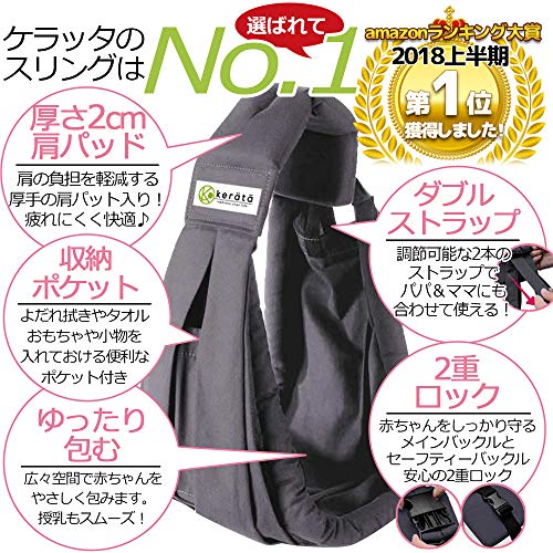 kerätä ベビースリング 新生児クッション付き 抱っこ紐や授乳クッションや授乳ケープとしても使える3WAY (モダングレー)