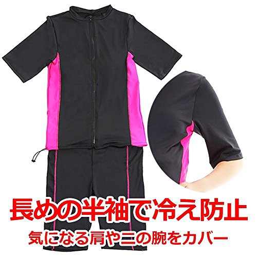 kerätä マタニティ水着 フィットネス 半袖 冷え防止 セパレート ブラック×ピンク (-XL-)