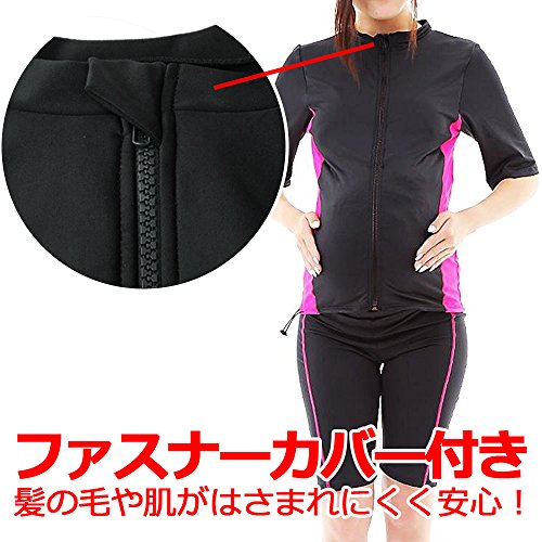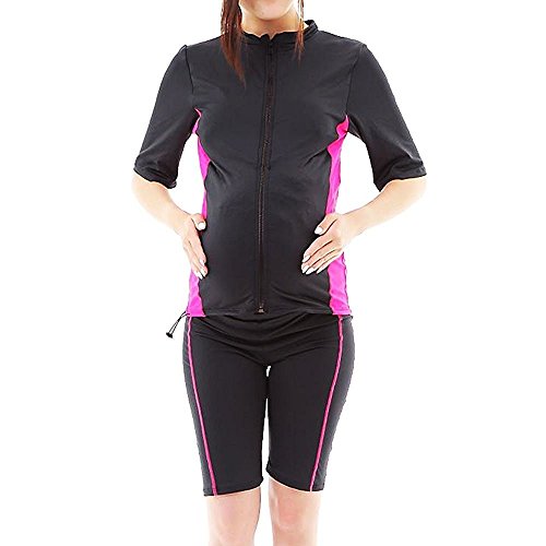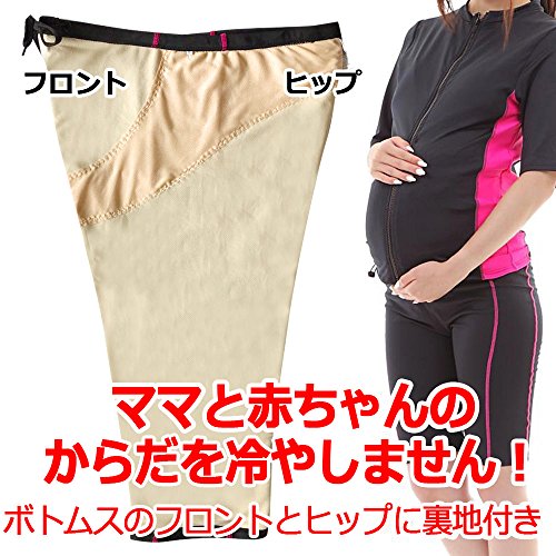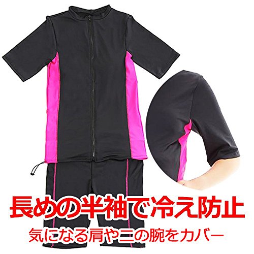 kerätä マタニティ水着 フィットネス 半袖 冷え防止 セパレート ブラック×ピンク (-L-)