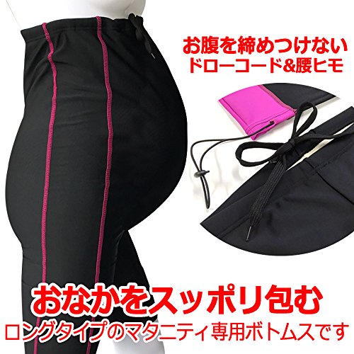 - 素材には伸縮性がある素材を使っていますのでお腹が大きくなっても快適フィット!ストレッチが効いているため、お腹が大きくっても動きやすいのが特徴です。デザインはピンクの縦ラインが入っているのでスリムに見せてくれる効果◎があります。腰回りは長さを紐で調整することができるので、お腹が大きくなってきても十分対応できます!