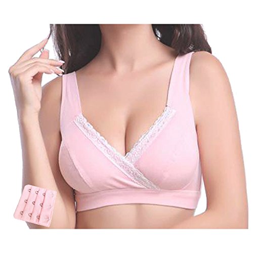 kerätä(ケラッタ)授乳ブラ マタニティ ブラジャー ノンワイヤー 前開き クロスオープン ハーフトップ 綿 産前産後兼用 延長ホック付き (M, ピンク)