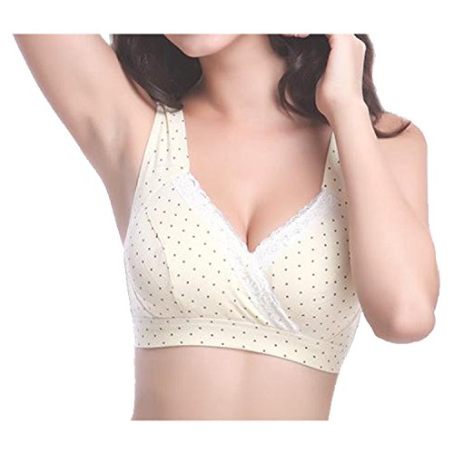 kerätä(ケラッタ)授乳ブラ マタニティ ブラジャー ノンワイヤー 前開き クロスオープン ハーフトップ 綿 産前産後兼用 延長ホック付き (M, イエロードット)