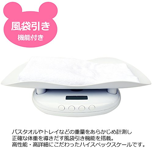 - 視認しやすいデジタルディスプレイと大きめのボタンで簡単操作!日々成長する体重を5g単位で正確に計測する高性能なスケールです。毎日のコンディションを管理できます。平均値測定を使用すれば、じっとしていない赤ちゃんでも10秒間点滅計測し平均値を自動計算します。風袋引き機能でバスタオルやトレイなどの重量をあらかじめ計測し、正確な体重を導き出します。高性能・高詳細にこだわったハイスペックスケールです。たっちが上手にできるようになったらトレイを外してパンダ体重計に変身♪30kgまで計測可能。