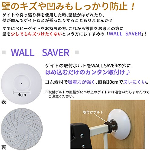 ゲイトすべり止めパッド すでにベビーゲイトをお持ちの方、これから設置をお考えの方に 壁を少しでもキズつけたくないという方におすすめの「WALL SAVER」! はめ込むだけのカンタン取付け♪ ゴム素材で吸着力が強く、直径10cmでズレにくい。