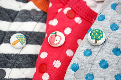 暖かみのあるキルティング素材のトレーナーオールです。ボーダーとドット柄でカラーによって柄が異なります。ネコの形のポケットがモケット素材でふわふわもこもこ素材です!きのこ、りんご、木の刺繍入りのくるみボタンもポイントになっています。