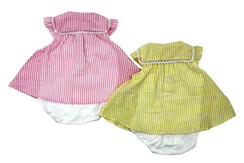 ストライプ柄のチュニックにブルマを履いているようなコーディネート風のロンパース、オールです。ストライプ柄が爽やかで夏らしい!リボンやチュール使いのセーラー衿も女の子らしいポイントです。