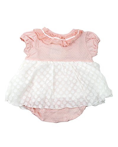 フリフリのシフォン素材のフリル衿にリボンのモチーフ、丸いパフスリーブのお袖にふんわりスカート。女の子らしいブルマオール、ロンパースです!