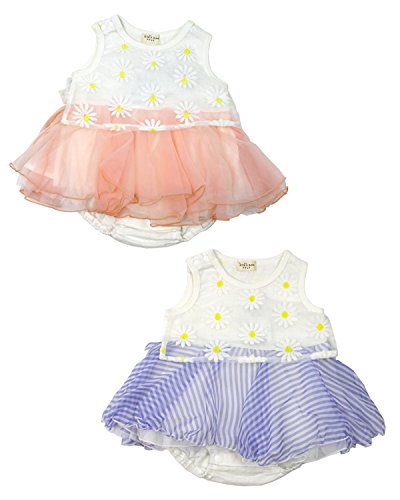 お出かけ、お呼ばれやパーティー、結婚式の付添いなどにもオススメなノースリーブタイプのオールです。身頃部分は涼しげなパターンメッシュ素材にチュール素材の重ね使い、チュールにお花の総柄の刺繍入りです。スカートはピンクはチュール素材、ブルーのストライプ柄はシフォン素材、裏地付きでふんわりしたスカートです。