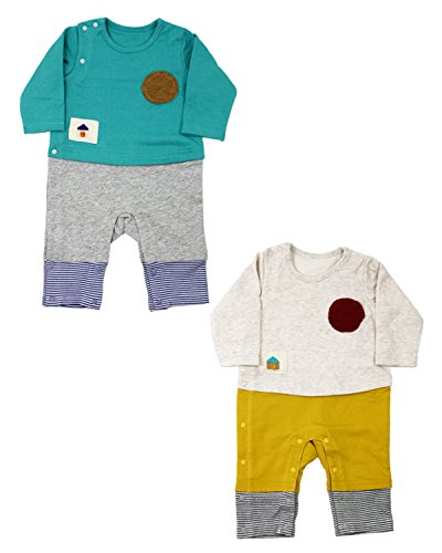 Tシャツとパンツを着ているみたいですが、1枚のオールタイプのセパレート風のTオールです。薄いガーゼのような素材を二重にしている接結素材♪とっても柔らか素材で着心地も良さそうです!(生地の特性上、洗濯によりしわがよる場合がございます。)