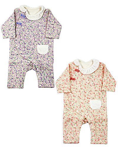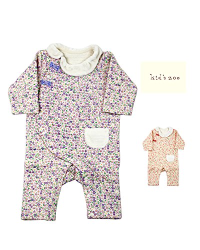 【子供服】 kids zoo (キッズズー) ボア衿付ニットキルト小花柄オール 70cm,80cm W64705