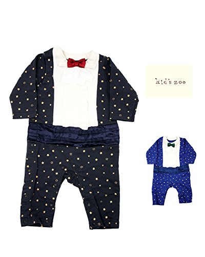 【子供服】 kids zoo (キッズズー) ミニ裏毛星柄箔プリントタキシードオール 70cm,80cm W54708