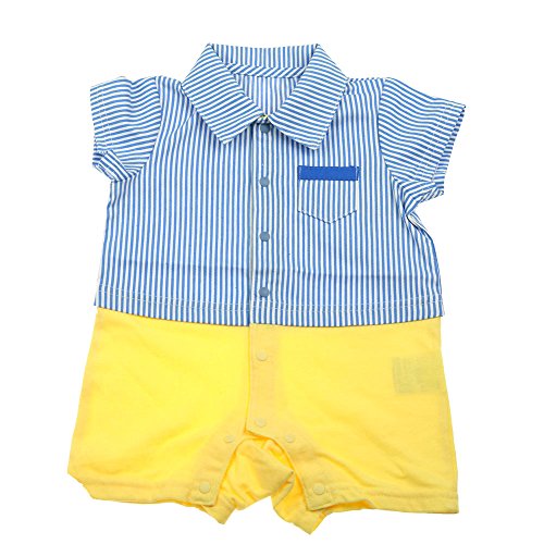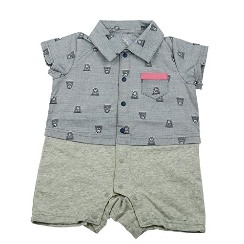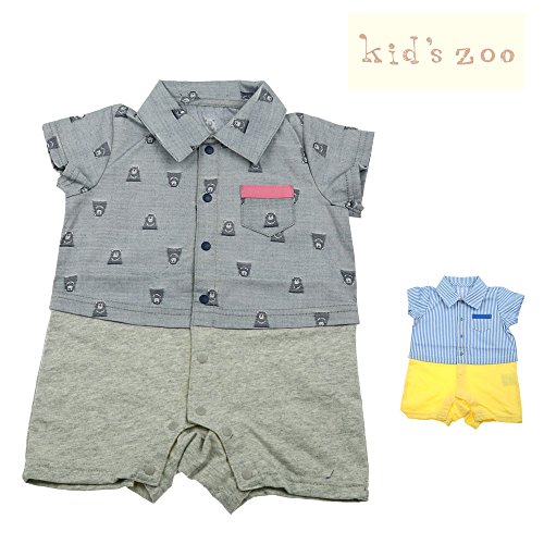 半袖シャツとパンツのコーディネートオール・ロンパース。カワイイくまさん総柄とシンプルなストライプシャツの2柄展開です。パンツ部分はカットソー素材です。ちょっとおめかししたお出かけなどにオススメです!