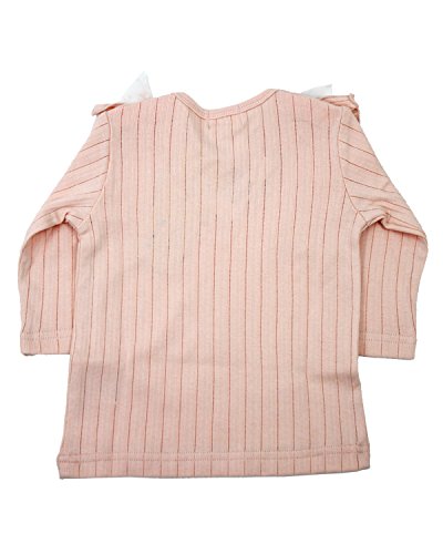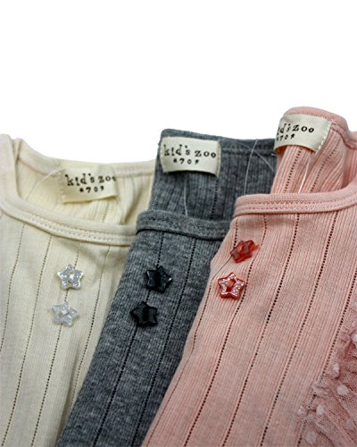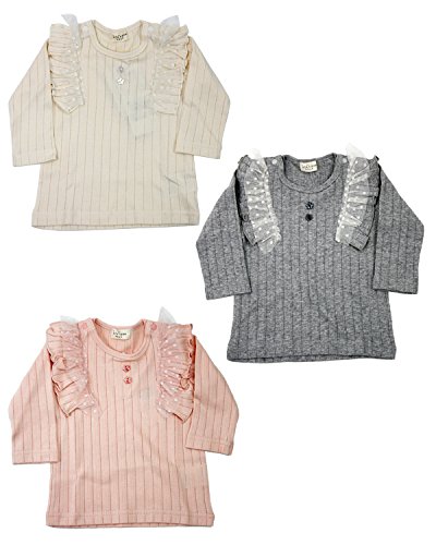 テレコ素材のシンプルTシャツ。肩フリルに水玉柄のチュール素材のフリル、星型のボタン付き。1枚で着ても可愛い、インナーにして着てもOKなTシャツです。
