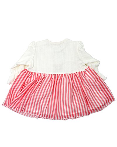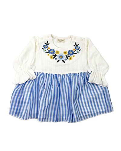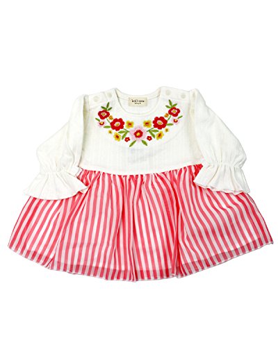 衿ぐりはお花の刺繍入り、スカート部分はストライプ柄のシフォン素材。春のお出かけにオススメなチュニックワンピースです!袖口にはゴムが入っていて、シフォンのリボンのモチーフが付いているのもさりげなく可愛いポイント!