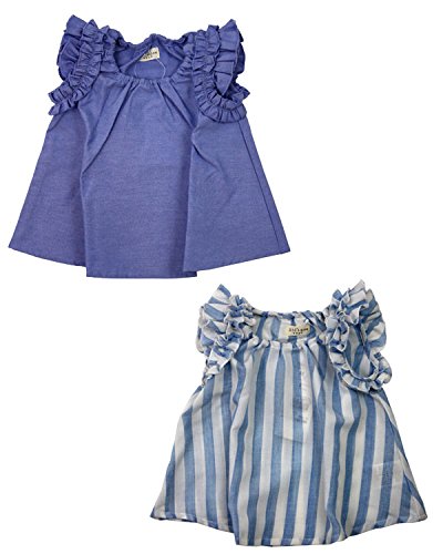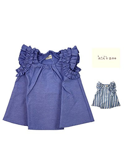 【子供服】 kids zoo (キッズズー) ストライプ・ダンガリー肩フリルチュニック 70cm~95cm W44903