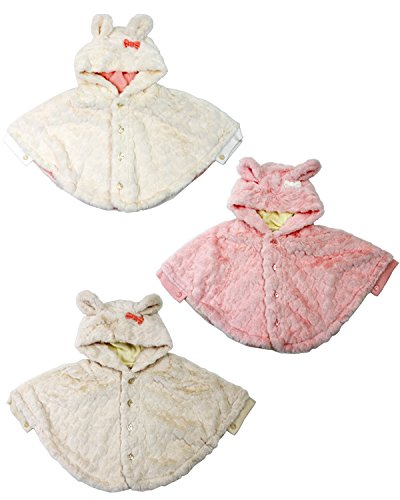 サイズ感があまりないので、長く着れるので、ギフトにもぴったりです!Sサイズが80cm前後、Mサイズが100cm前後になります。ふわふわもこもこで触り心地もとってもいいモケットボア素材のケープ、ポンチョ、マントです。うさぎの耳付きにリボンがポイントになっていて可愛い!