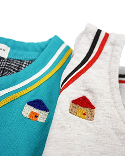 Tシャツより厚手、トレーナーよりは薄手のミニ裏毛素材のベストです。ちょっとした羽織として、季節の変わり目の羽織として、お部屋着としても重宝するアイテムです。胸元のお家の刺繍も可愛い!ボタン開きの前開きタイプのベストです。