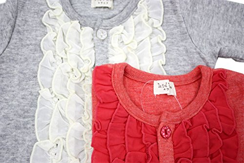 薄いガーゼのような素材を二重にしている接結素材♪とっても柔らか素材で着心地も良さそうです!(生地の特性上、洗濯によりしわがよる場合がございます。)シフォン素材のフリルがいっぱい!女の子らしいカーディガンです。