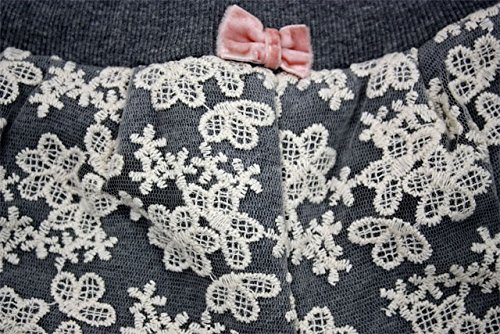 裏毛素材のショートパンツとメッシュ接結のレギンスを重ね着しているみたい!別々に着ているみたいですが、一体化しているので、1枚で楽ちんで重ね着を楽しめます!ショートパンツ部分のレース使いが女の子らしくて可愛い!