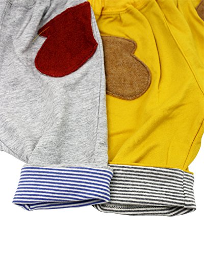 トレーナーの裏毛より薄手のミニ裏毛素材のパンツです。おむつをしていても大丈夫なお尻がゆったりしたサルエルデザイン。裾は折り返すとボーダーの配色になっているので、裾を伸ばしても折り返しても履けます!ミトンの形のふわふわポケットもポイント!