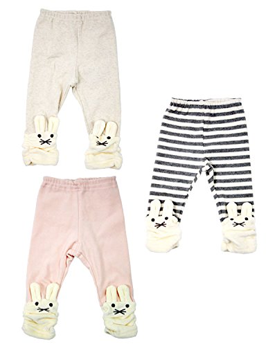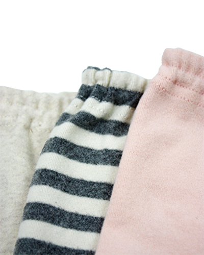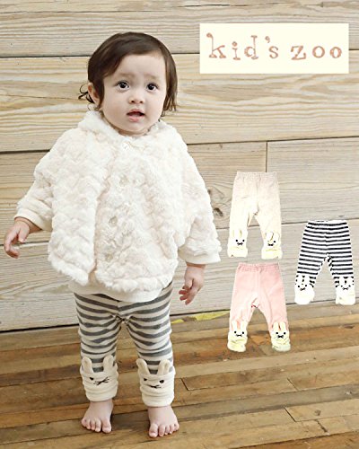 表が起毛感があるフライス素材のレギンス。裾のうさぎがポイントになっていて可愛い!オフホワイトとピンクは無地、グレーのみがボーダーです。