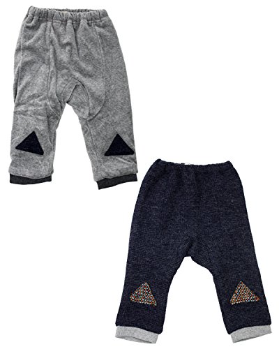 三角のひざ当てが可愛い!お尻の部分がゆったりしたサルエルタイプのパンツです。表はグレーがベロア、コンはニットのような風合いです。裏地はショートボアの暖かパンツです!